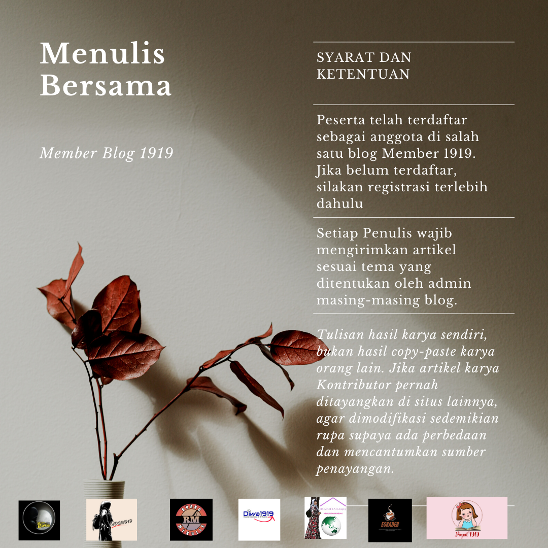 Member Blog 1919 menghadirkan Program Menulisbersama, sebagai wadah bagi para sahabat untuk berkarya. Tentu ada syarat dan ketentuannya yang harus dipatuhi para sahabat.